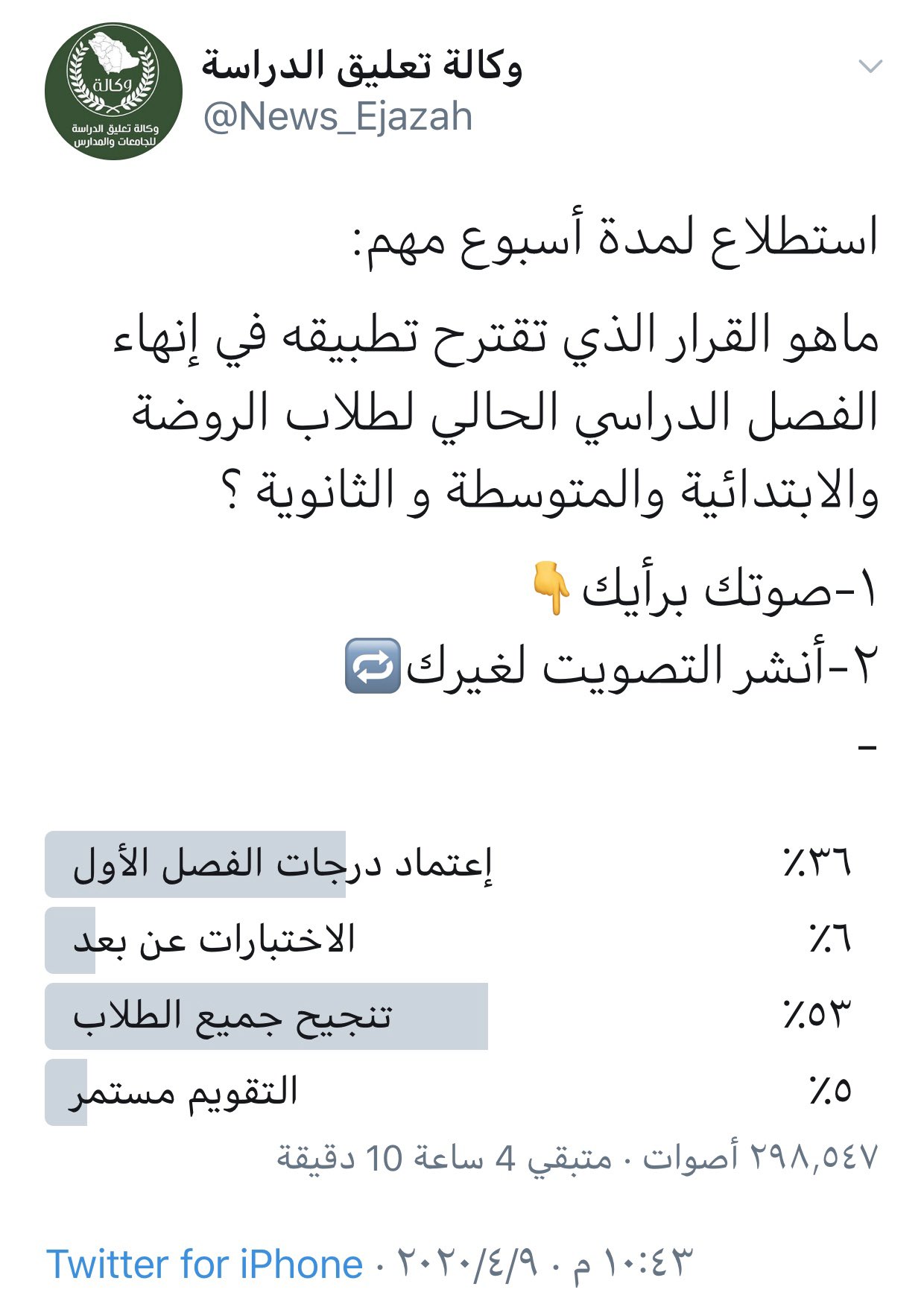 وكالة تعليق الدراسه. وكالة تعليق الدراسة bio موقع إلكتروني إخباري متخصص في تغطية ومتابعة تعليق الدراسة وأهم أخبار التعليم والأخبار العامة في السعودية حصريا للتواصل واتساب. Any twitter company page stock live developer ads. أعلنت وزارة التعليم تعليق الدراسة مؤقتا في مدارس ومؤسسات التعليم العام والأهلي والجامعي والمؤسسة العامة للتدريب التقني والمهني الحكومية والأهلية بجميع مناطق ومحافظات المملكة اعتبارا من اليوم الإثنين حتى إشعار آخر وفق ا للإجراءات الوقائية والاحترازية الموصى بها من قبل الجهات الصحية المختصة في المملكة العربية السعودية وذلك في إطار جهودها الحثيثة للسيطرة على فايروس كورونا الجديد covid19 ومنع دخوله وانتشاره وانطلاق ا من الحرص على حماية صحة الطلاب والطالبات والهيئة التعليمية والإدارية في التعليم العام والجامعي وضمان سلامتهم.
